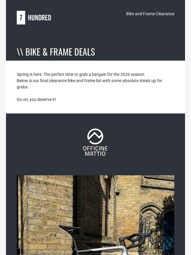FINAL BIKE CLEARANCE
