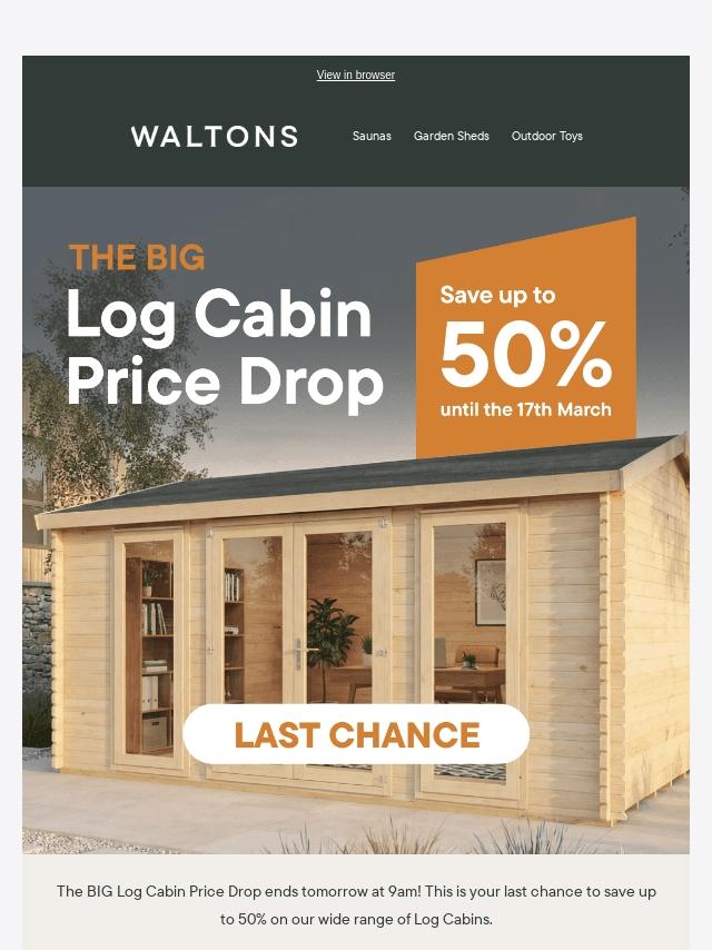 Ends tomorrow: up to 50% off Log Cabins ...