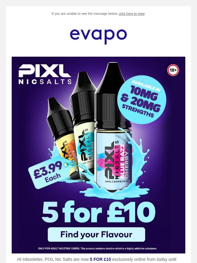 PIXL Nic Salts now 5 for £10 exclusivel...