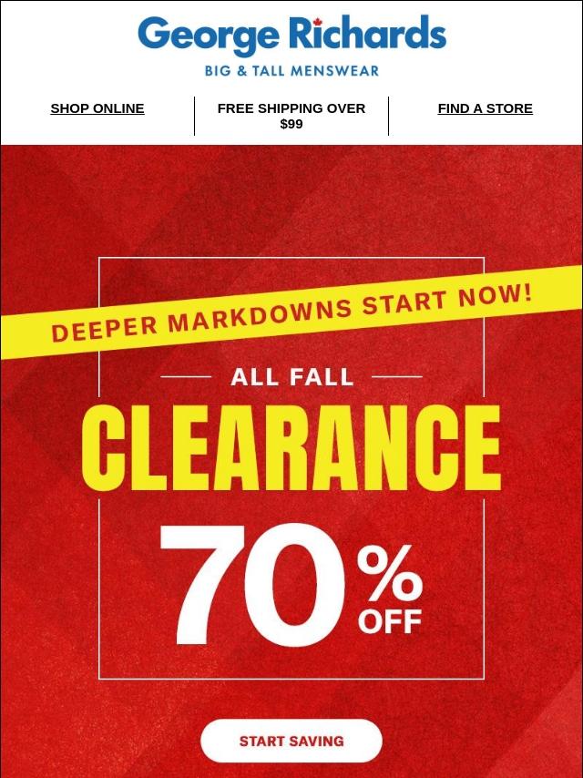 70% off ALL FALL CLEARANCE!