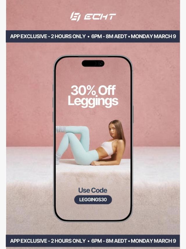 Tomorrow. 30% Off Leggings. App Only.