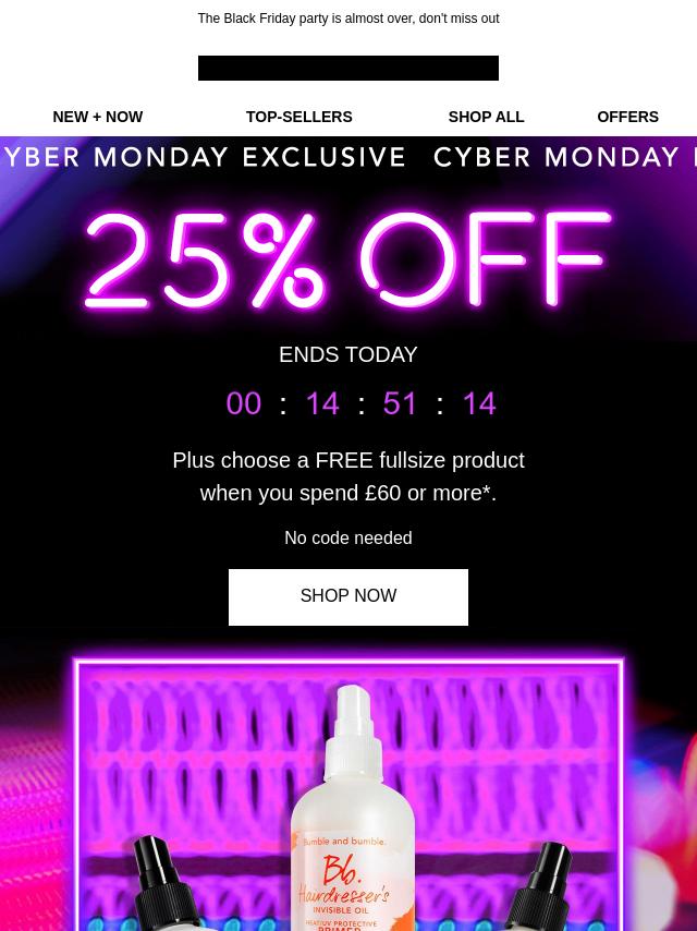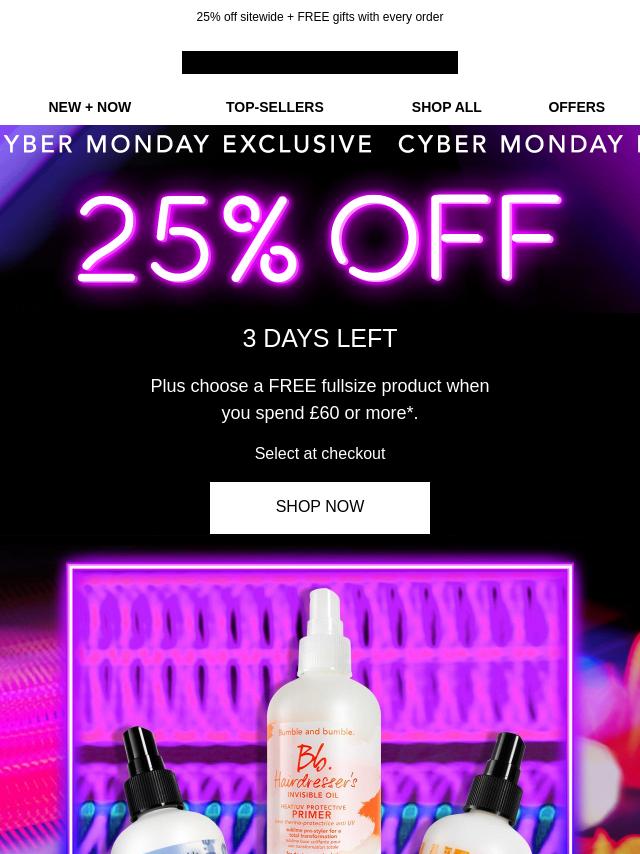 Free Hairspray & 25% off ends soon.