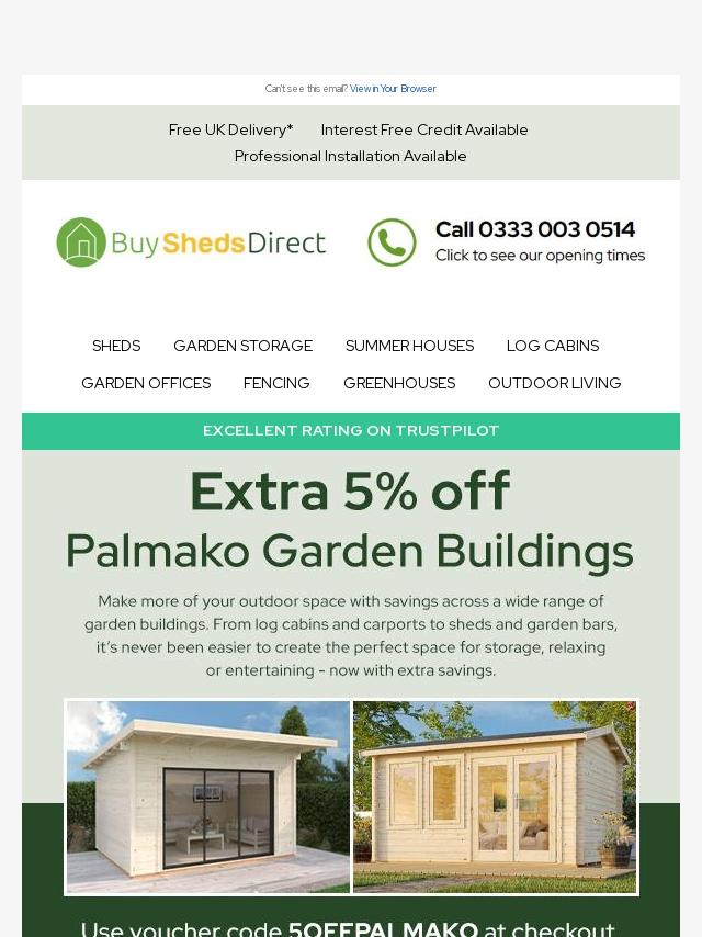 EXTRA 5% off Palmako Garden Buildings
