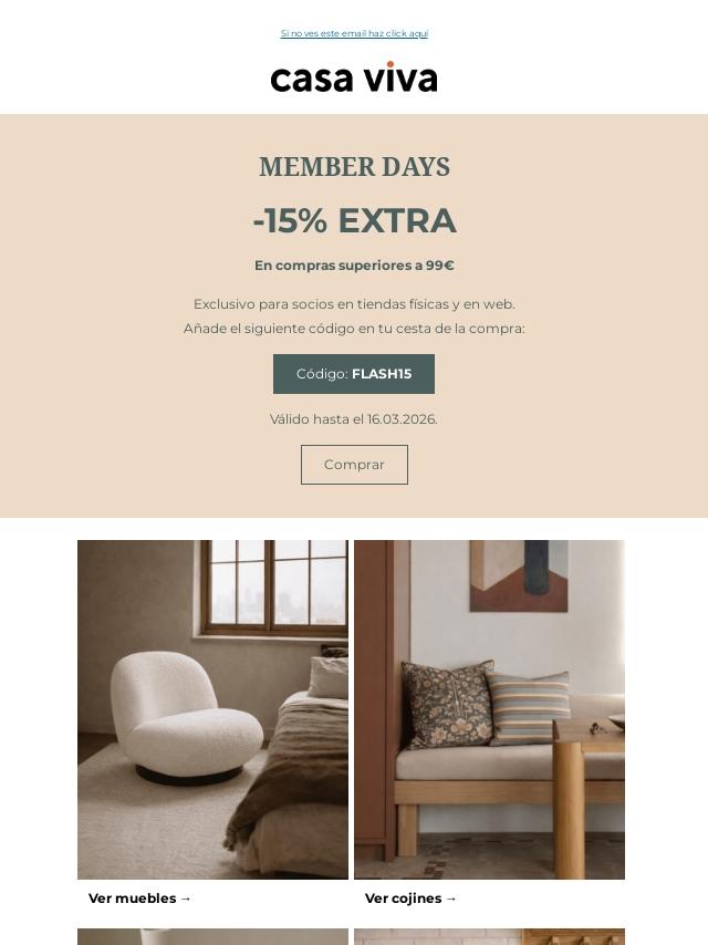 Member Days: -15% EXTRA online y en tien...