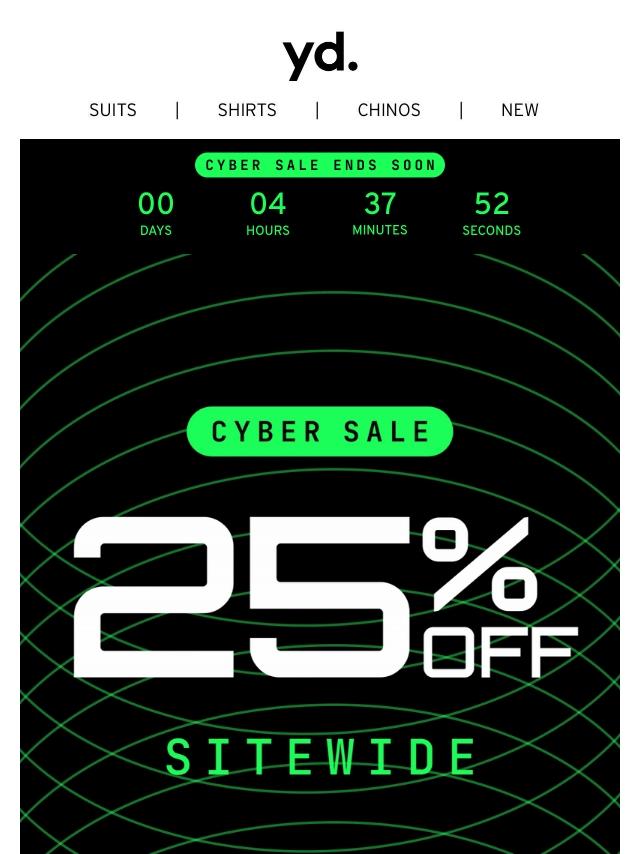 Cyber Sale = 25% Off Sitewide ⚡