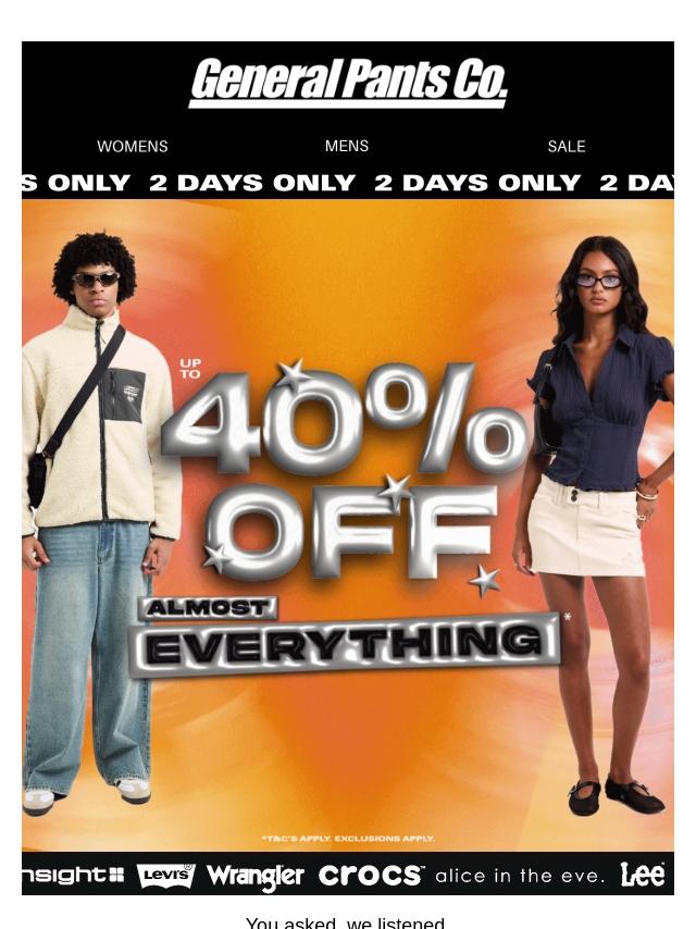 FINAL HOURS: 40% OFF EVERYTHING*