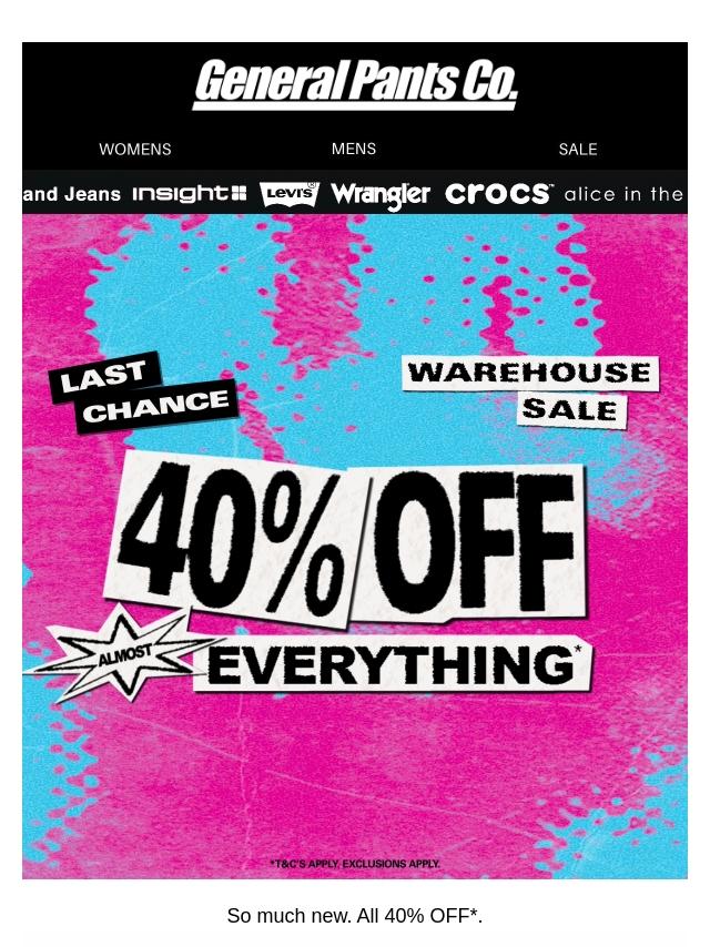 EXTENDED: 40%-50% OFF* WAREHOUSE SALE