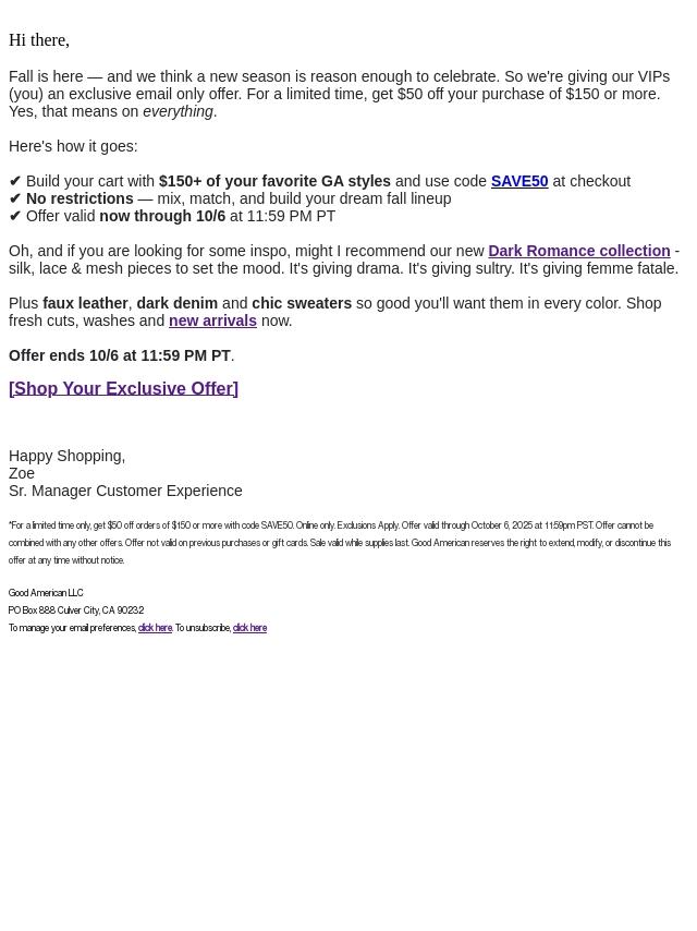 Emails from GOOD AMERICAN: