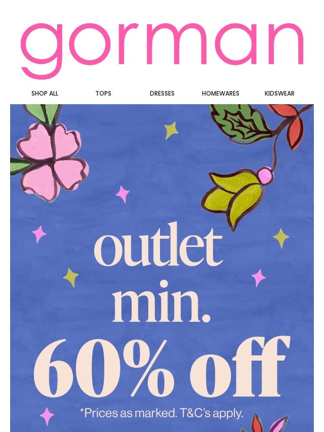 Min. 60% off outlet styles 🙌