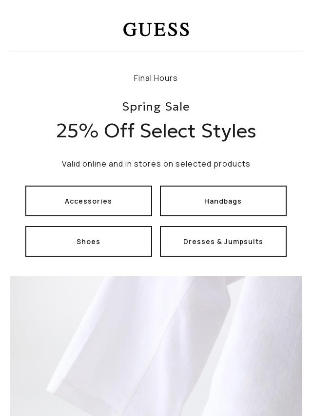 Spring Sale: 25% Off Select Styles