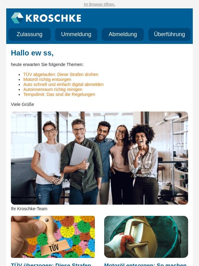 Emails from Kroschke Autozulassung: