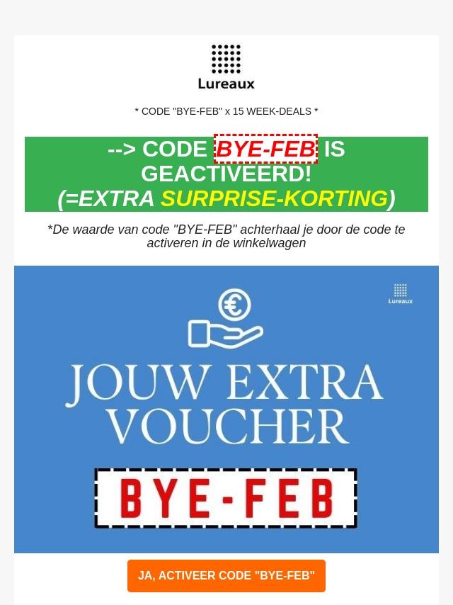 🎫 Code "BYE-FEB" is geactiveerd + 15 ...