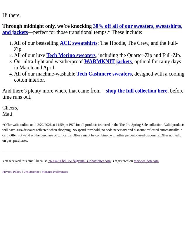 Emails from Mack Weldon: