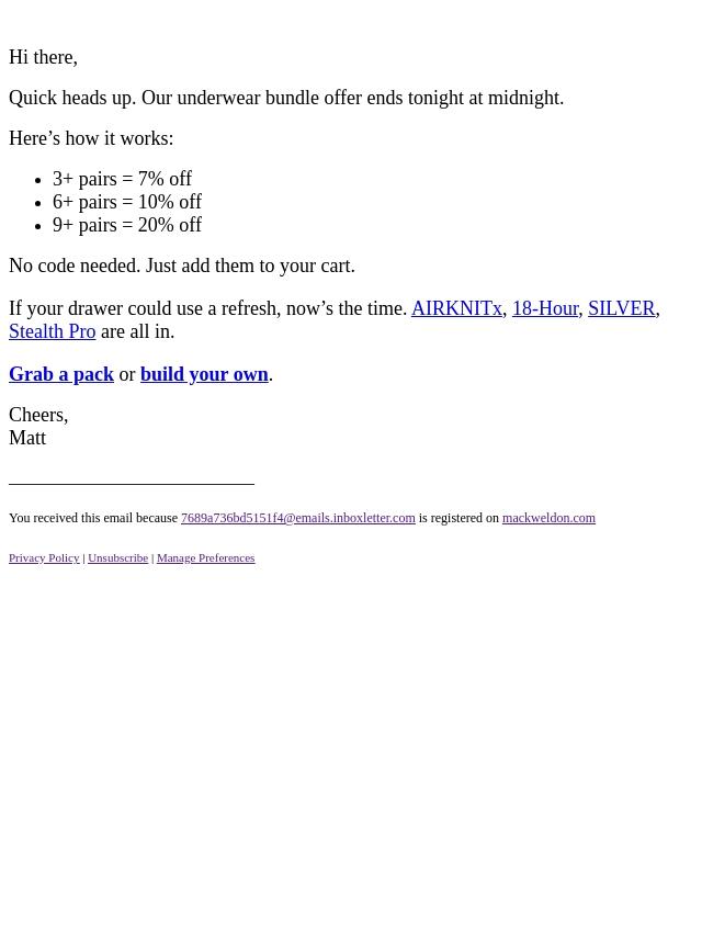 Last call for up to 20% off all underwea...