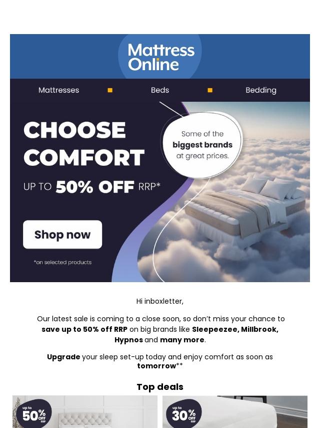 Emails from Mattress Online: