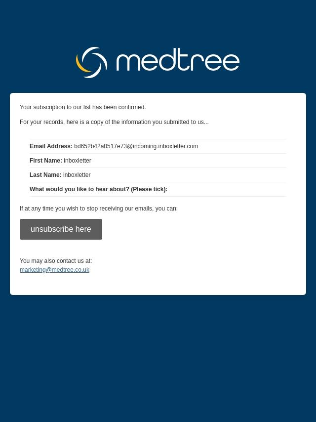 Subscription confirmed to MedTree Newsle...