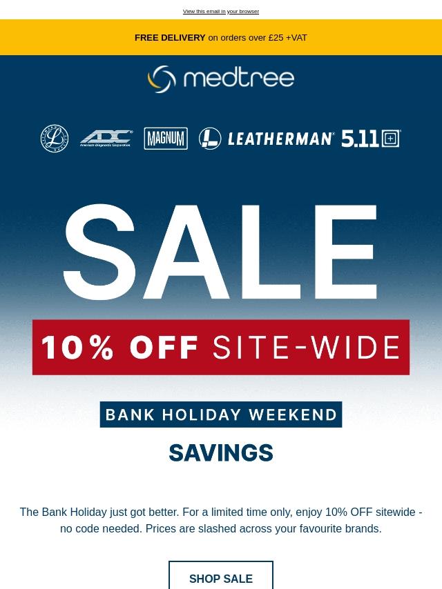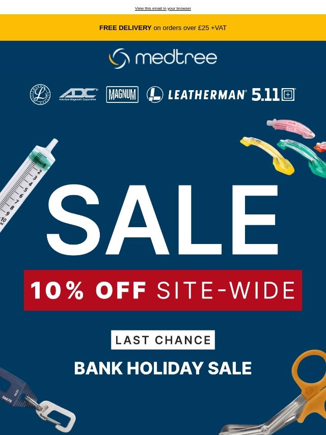 Bank Holiday Sale: 10% OFF 🚑