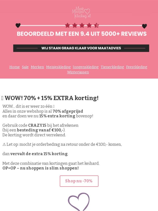🤯 WOW! 70% + 15% EXTRA korting!