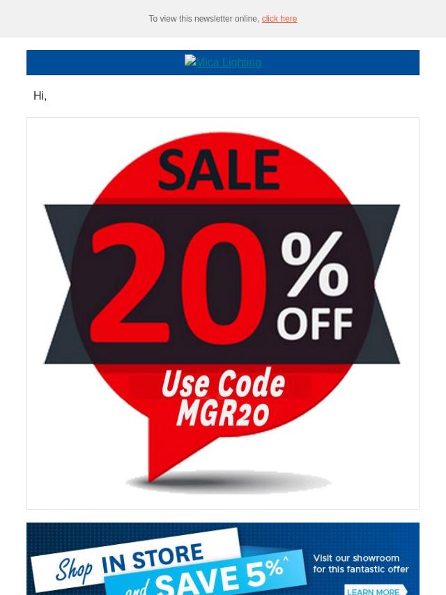 Emails from Mica Lighting:
