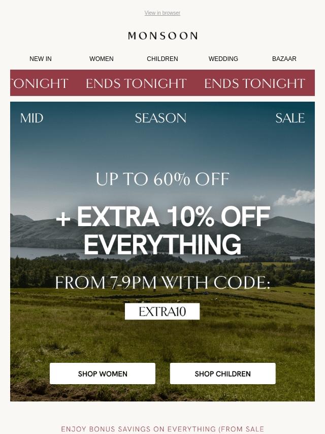 ENDS TONIGHT ⏰ Up to 60% off sale
