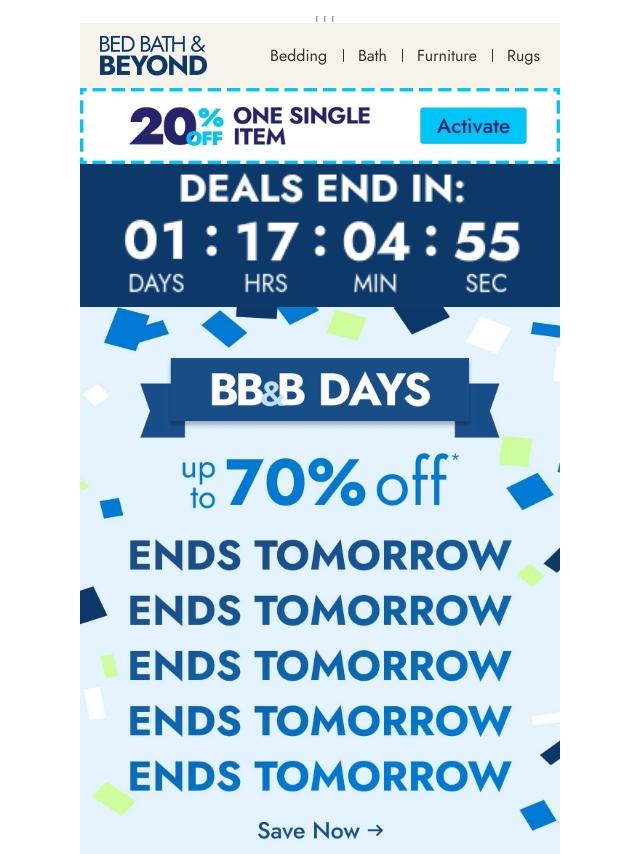 BB&B Days: Up to 70% offβDonβt wait ...