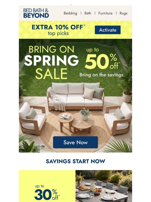 Extra 10% off + up to 50% off—Bring on...