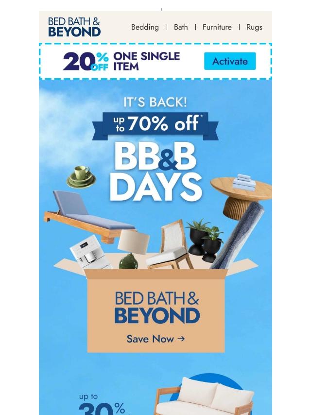 BB&B Days are back: Up to 70% off