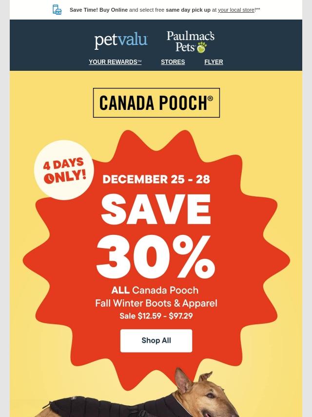 ENDS TOMORROW! 30% OFF ALL Canada Pooch ...