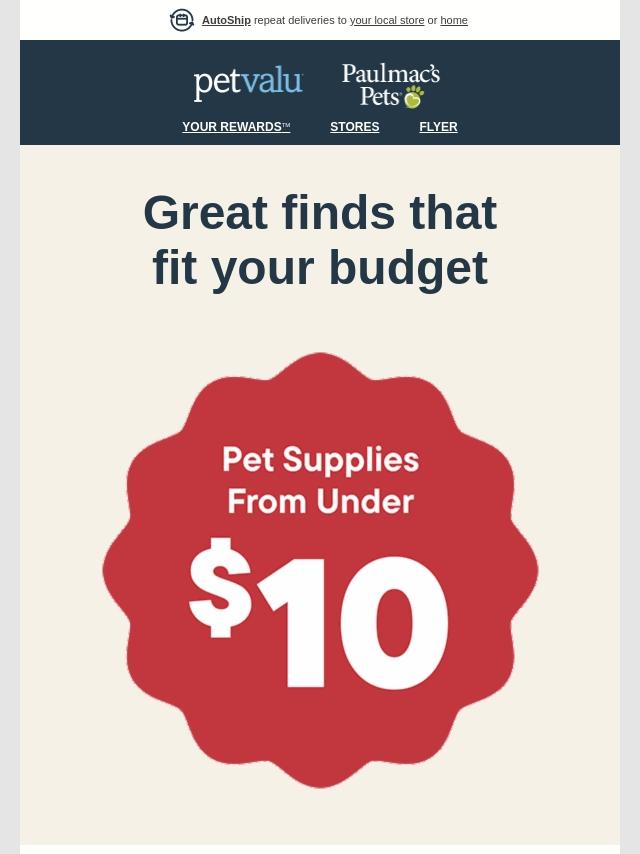From under $10. Toys, treats, collars, b...