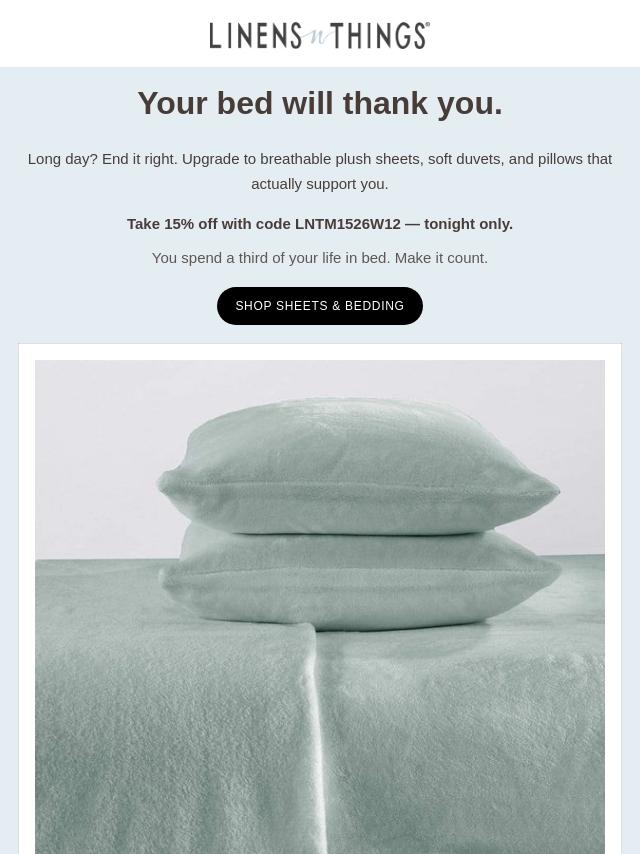 Tonight only: 15% off sheets & bedding