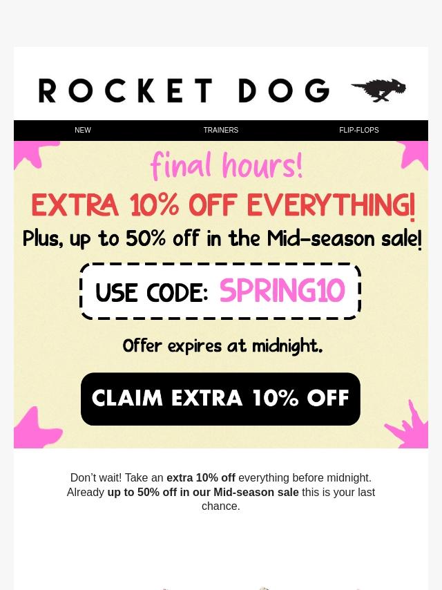 Don't Miss Out! Extra 10% Off Ends Midni...