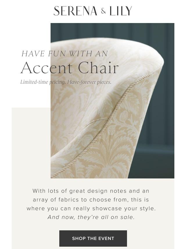 Have fun with an accent chair, now on sa...