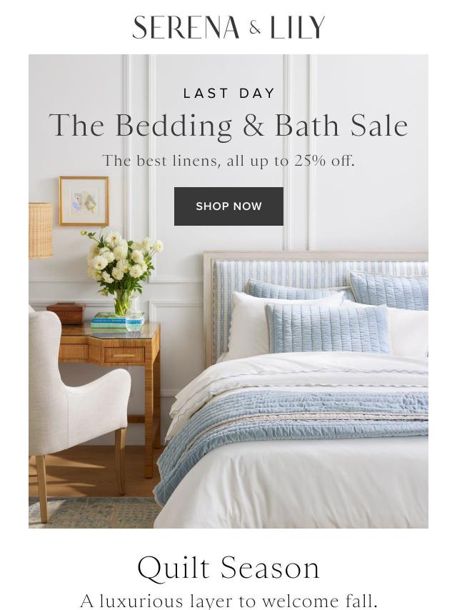 Last day for our Bedding & Bath Sale.