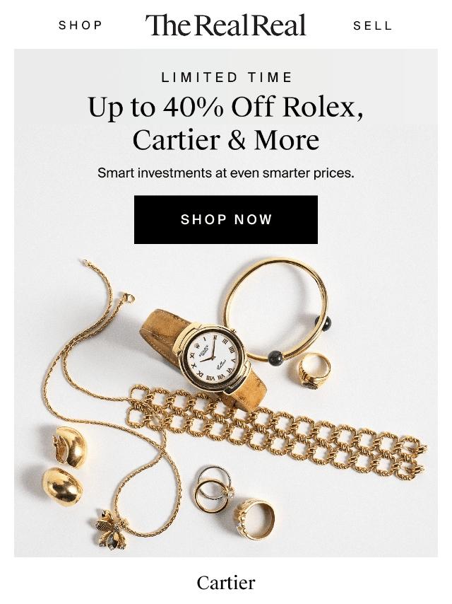 Up to 40% off Rolex, Cartier & more