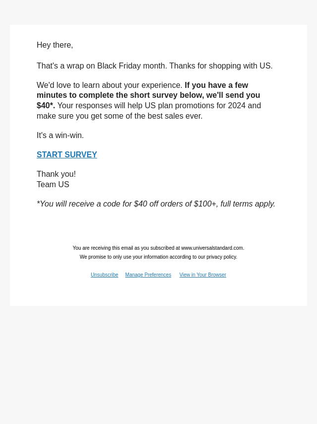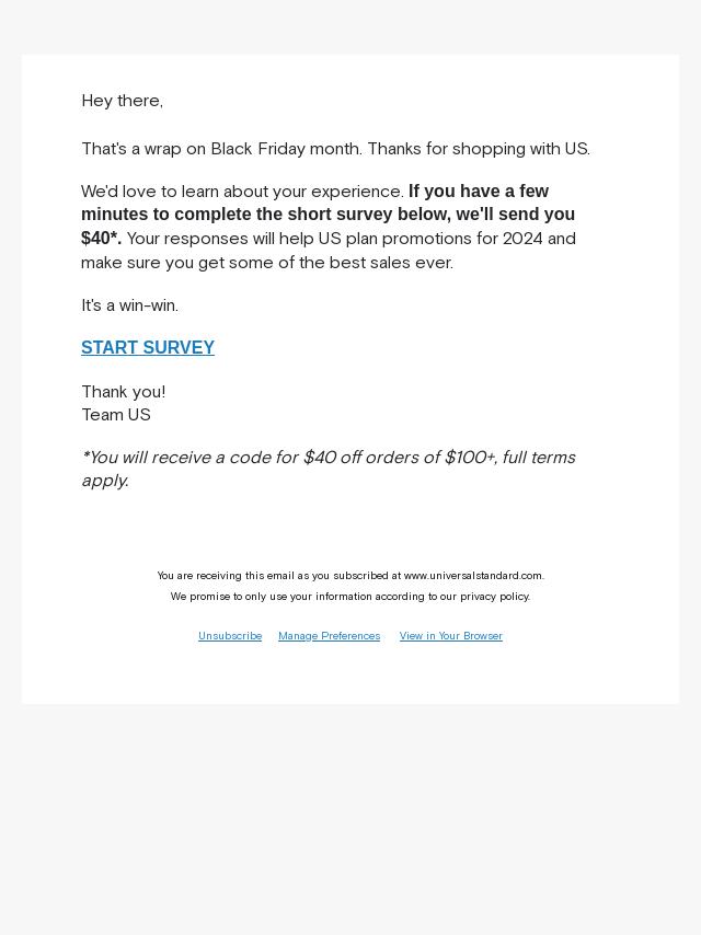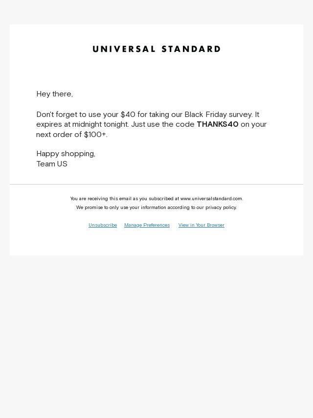 Emails from Universal Standard: