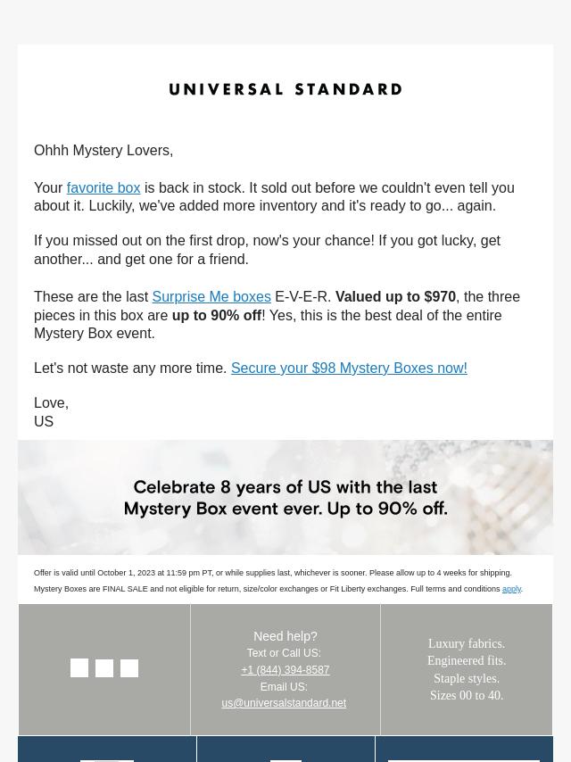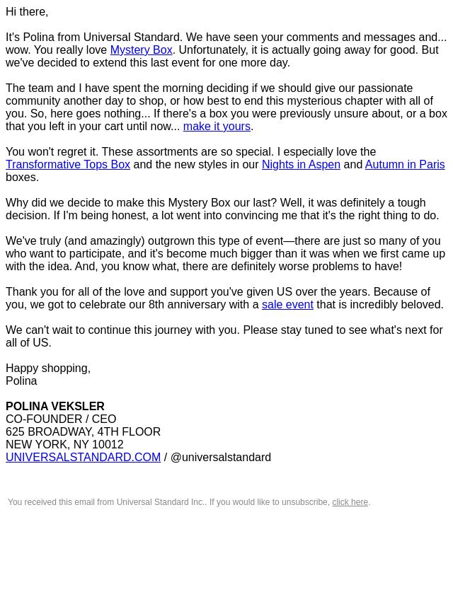 Emails from Universal Standard:
