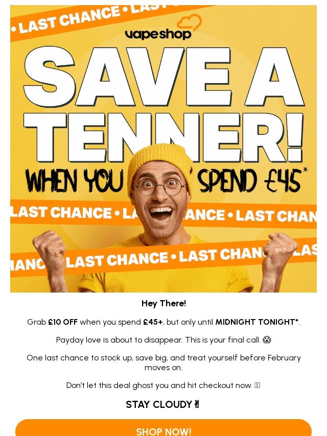 £10 OFF £45 Ends TONIGHT