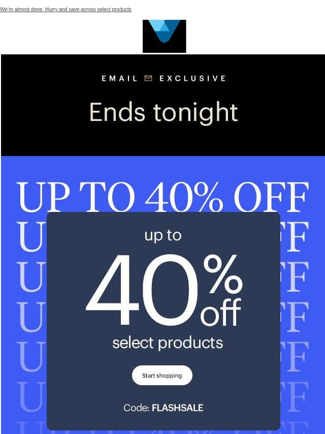 Up to 40% off ENDS TONIGHT