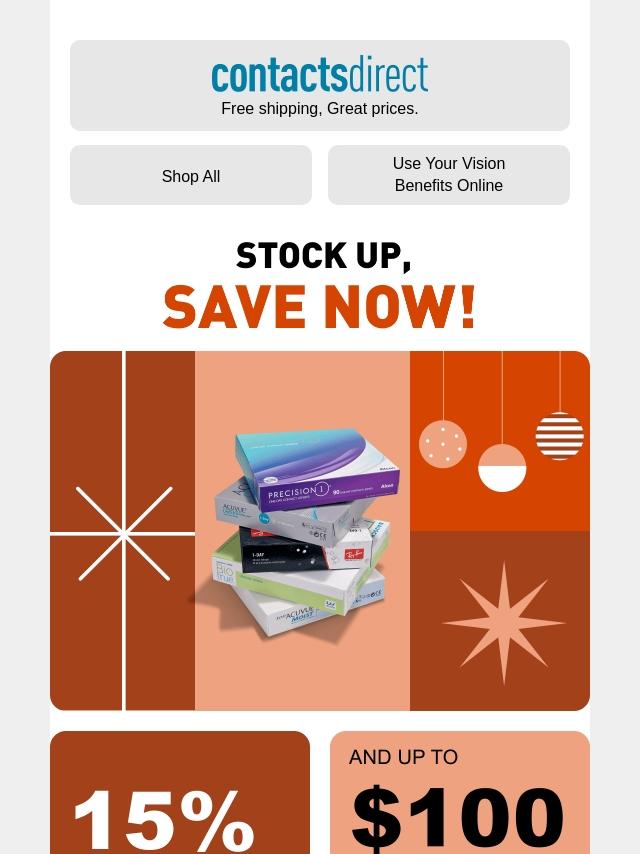 Stock up now with 15% off all contacts!