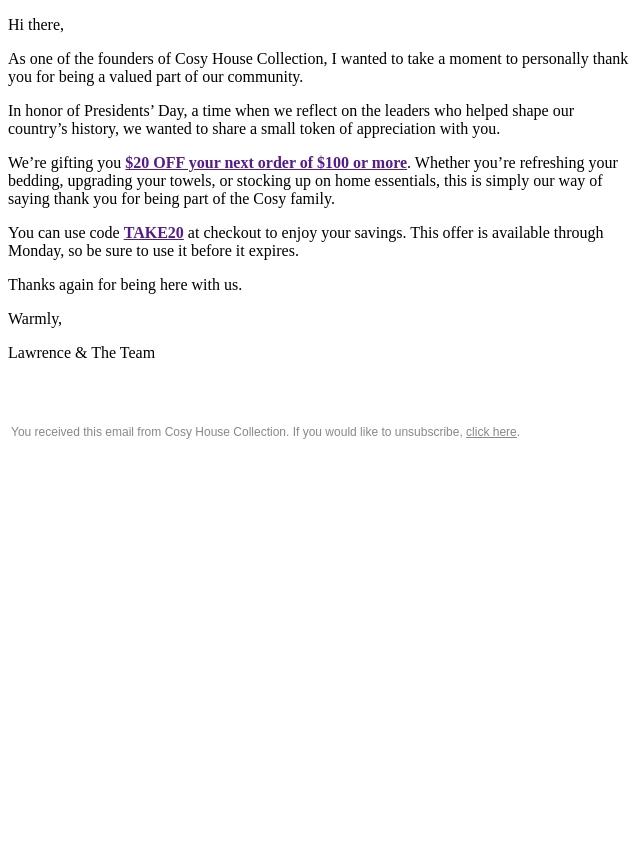 A Cosy Treat: $20 OFF Your Order ✅