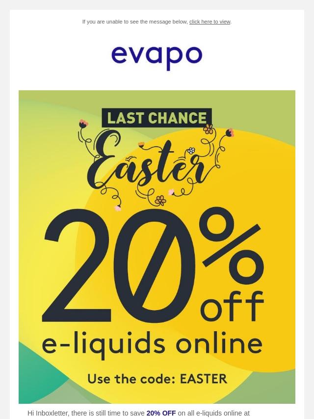20% off e-liquids online | Easter openin...