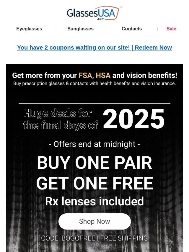 Emails from Glasses USA:
