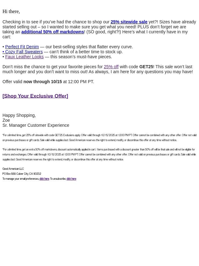 25% Off Jeans, Sweaters & More