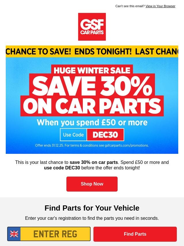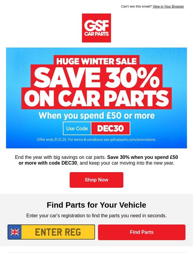 End of Year Sale: Save 30% on Car Parts