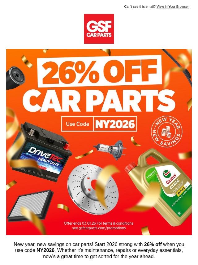 Start 2026 With 26% Off Car Parts