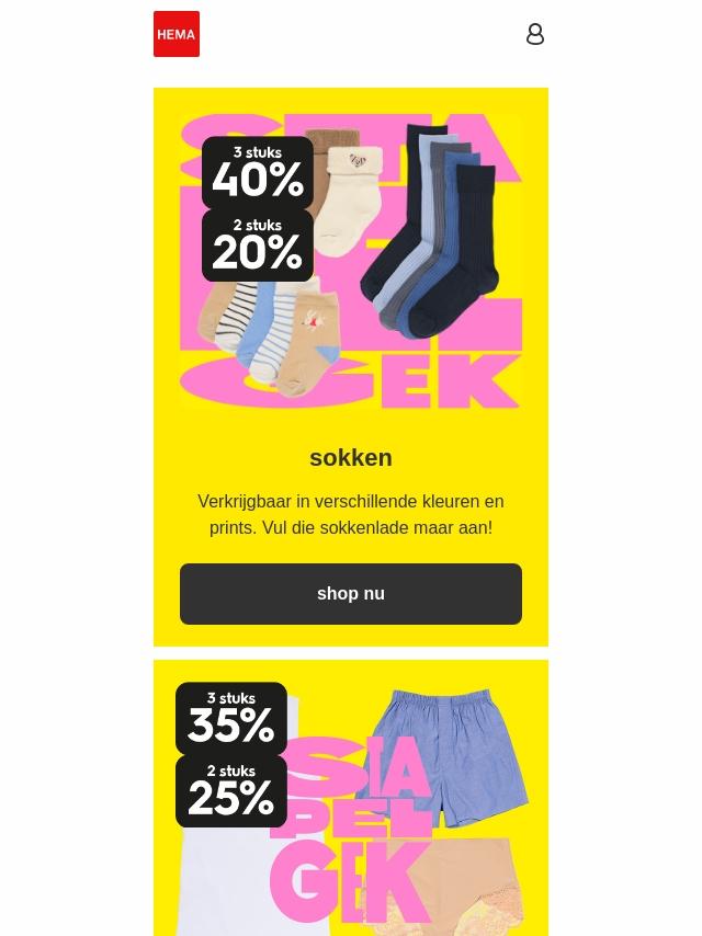 stapel je gek: tot 40% korting op sokken...