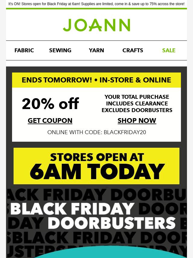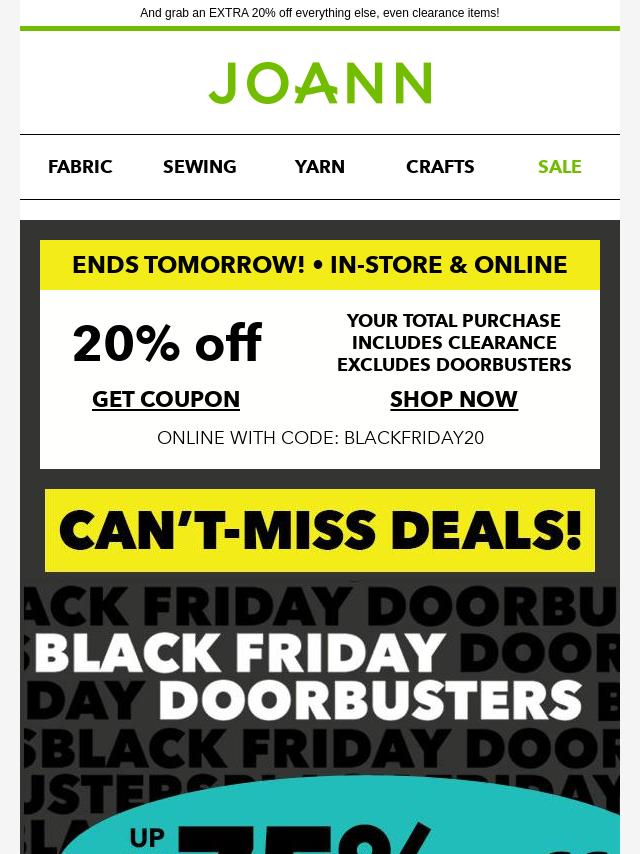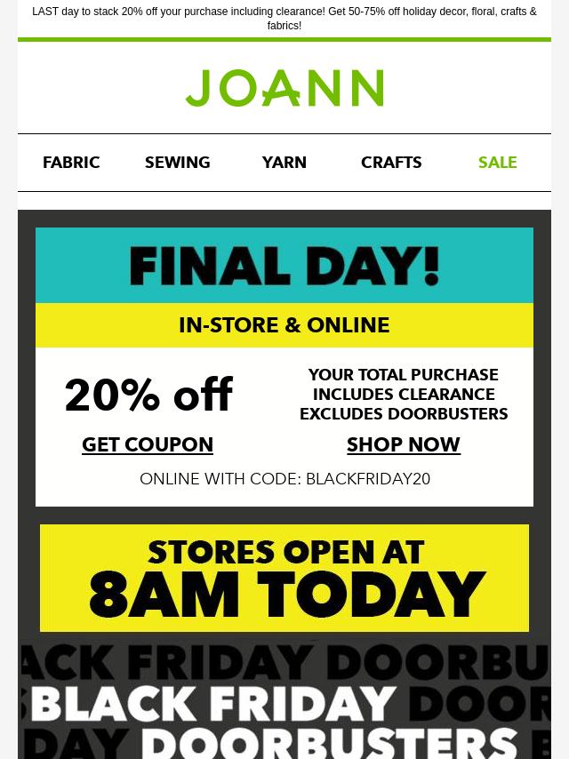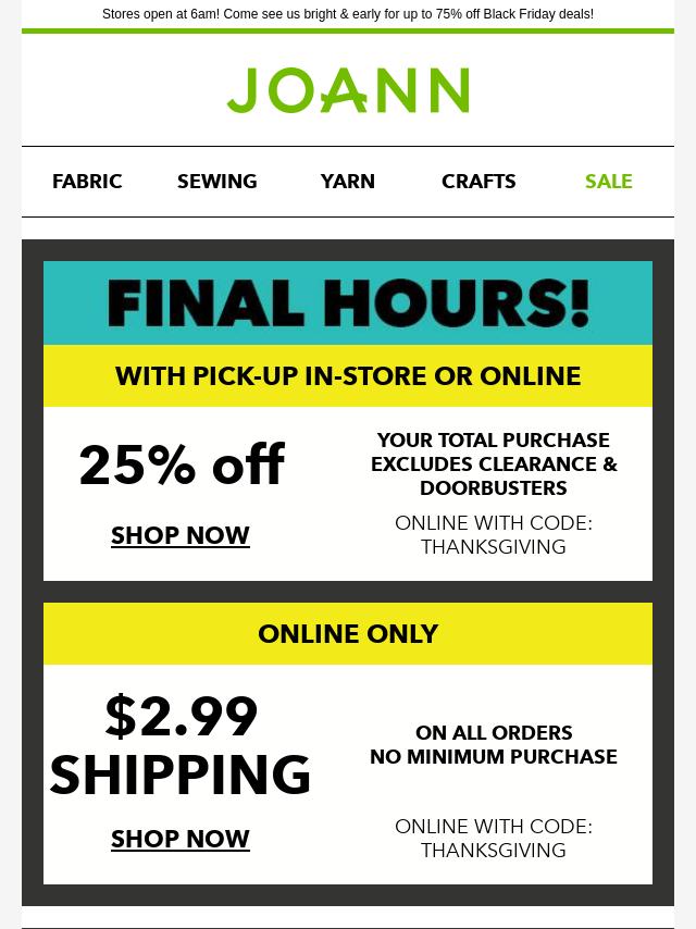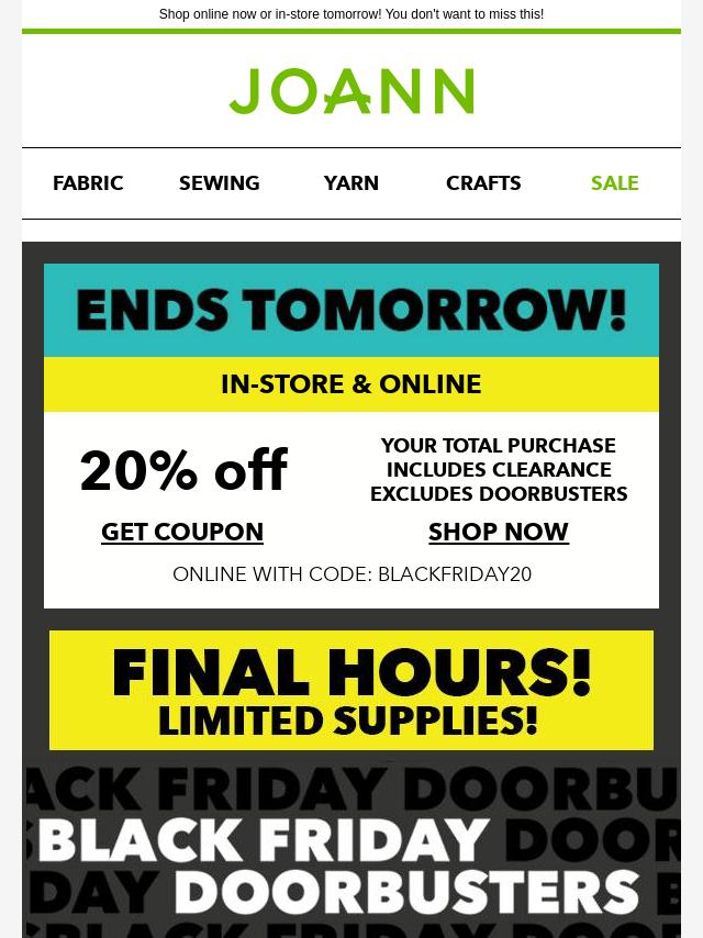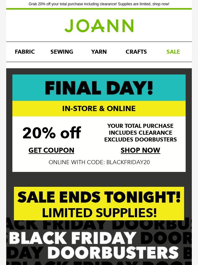 Emails from Jo-Ann Fabric and Craft Store: