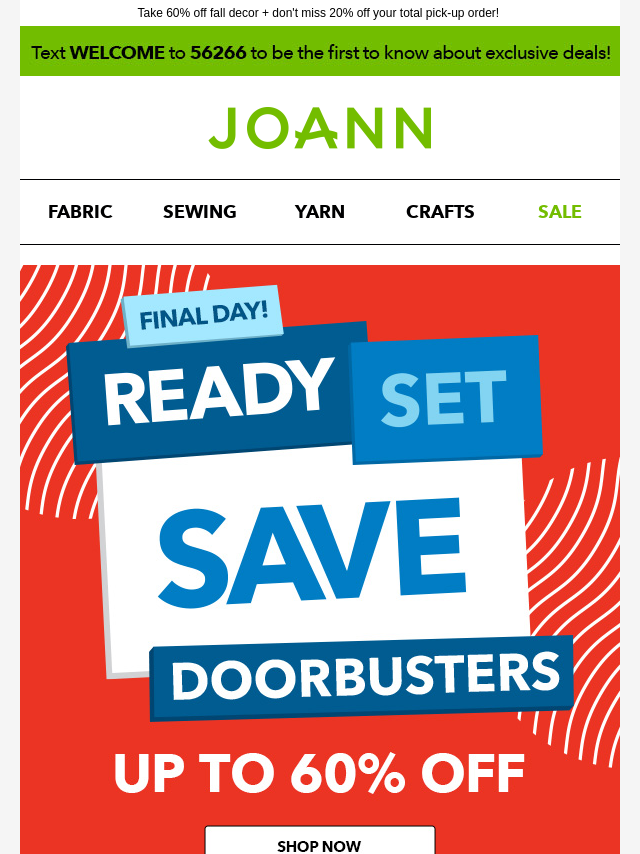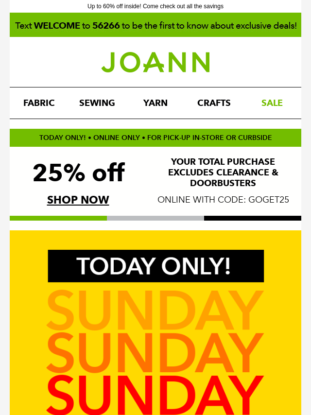 Emails from Jo-Ann Fabric and Craft Store: