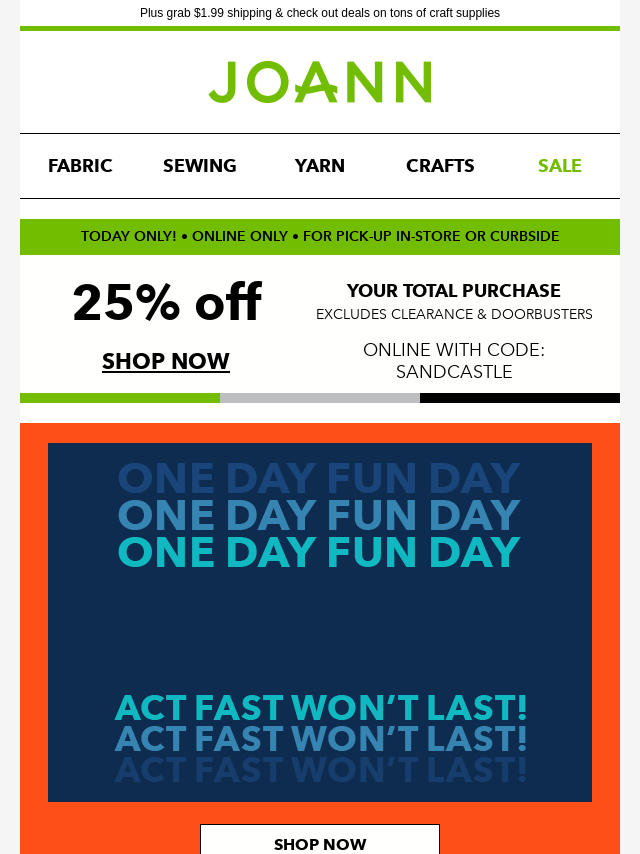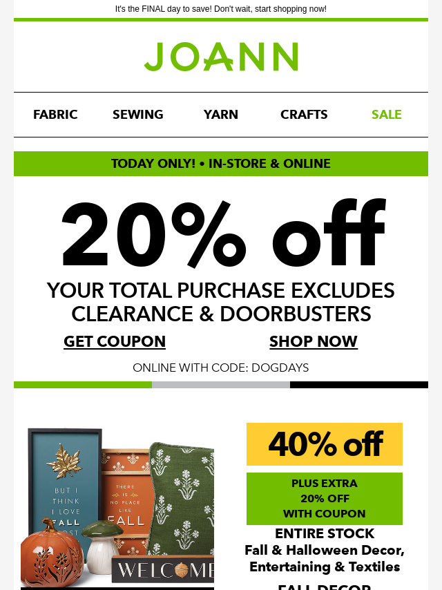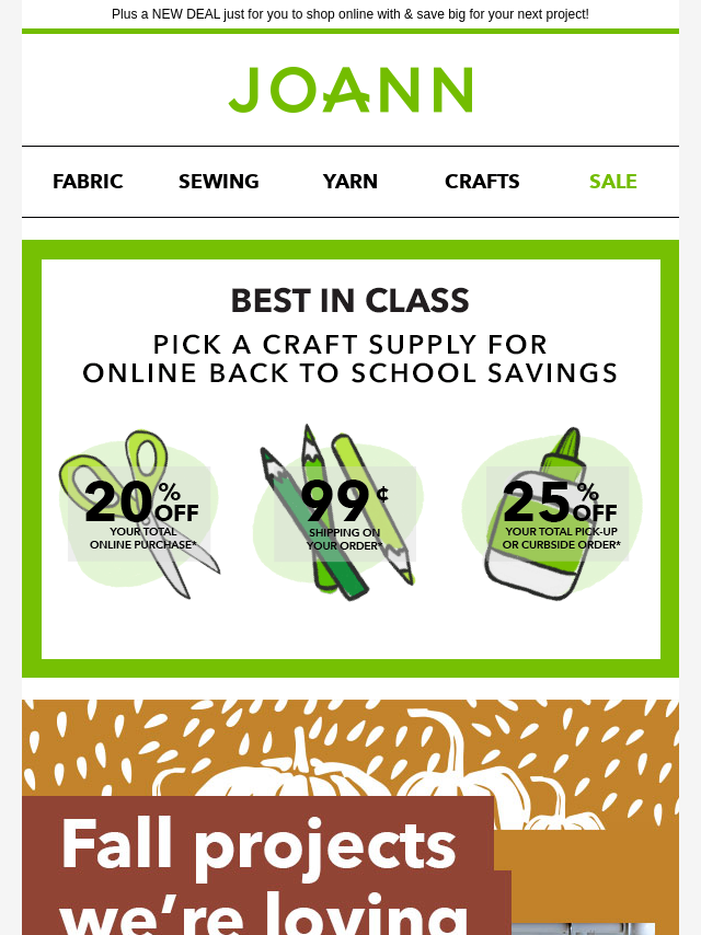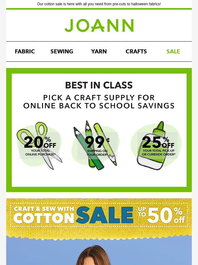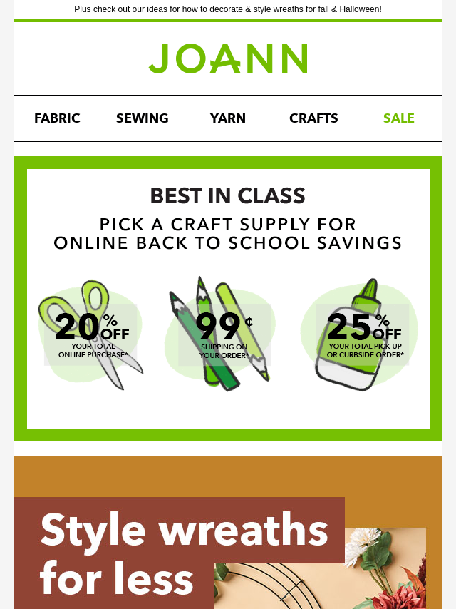 Emails from Jo-Ann Fabric and Craft Store: