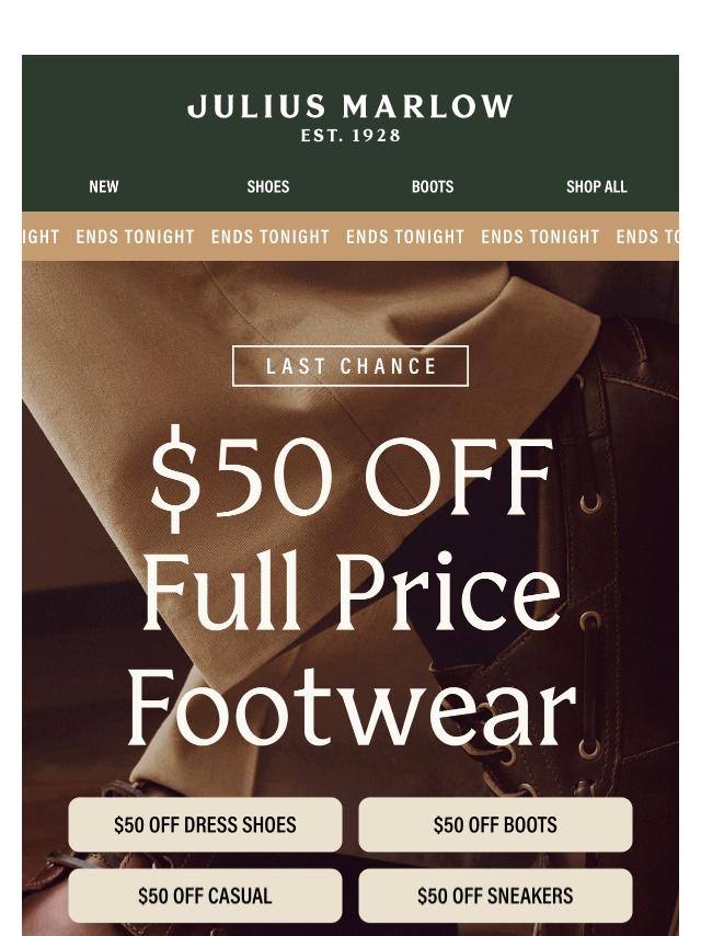 $50 Off Full Price Ends Tonight